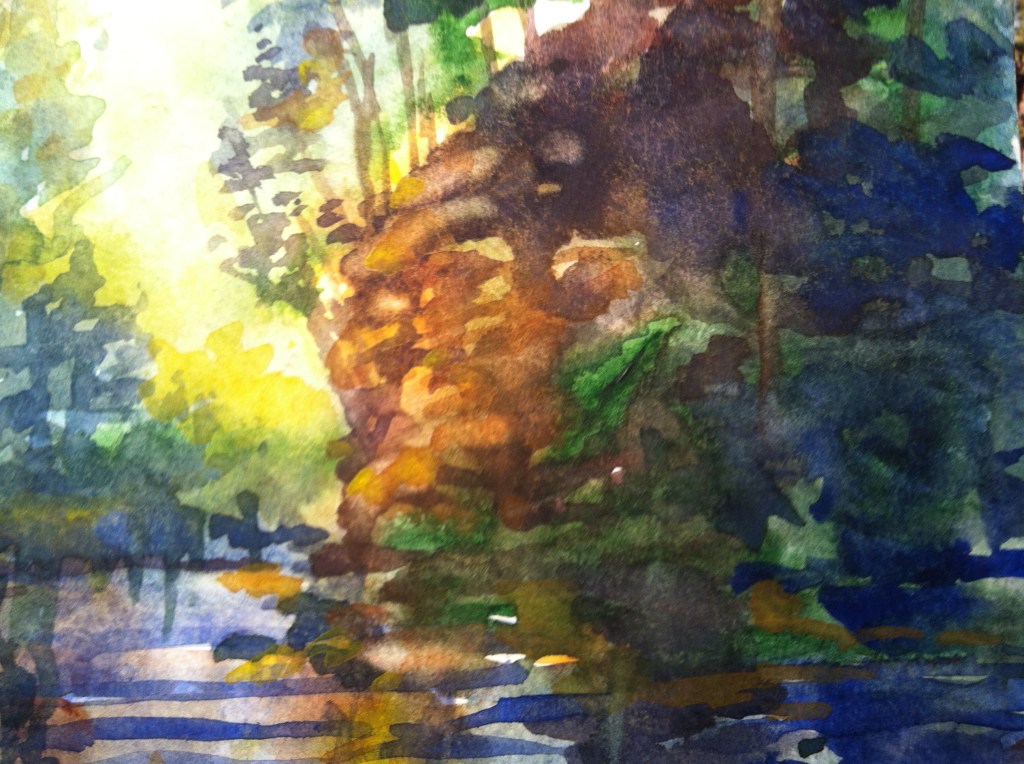 This watercolor seems to melt the rocks right into the water below. Peace and serenity are like that too. The anxiety and depression which surrounds us on a daily basis can only be calmed by the hand of God. We see Him in nature. We hear his voice in the wind. We see His glory all around as our troubles dissipate into nothingness. He is our rock and salvation. A very present help in those difficult times.
