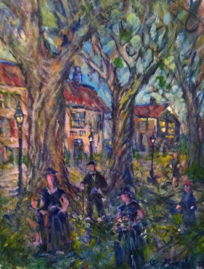 The painting for today shows a group of people gathering together. The people are dressed to the nines. They have a mission of coming together to talk, share ideas, perhaps eat or worship together. I think the point is, we are losing one of our most important tools as human beings. It is not good for man to be alone. God realized the need for mankind to have others to share with, to live with, to talk with, to communicate ideas and solutions for day to day issues. There’s a lot to be said for friendship and companionship.