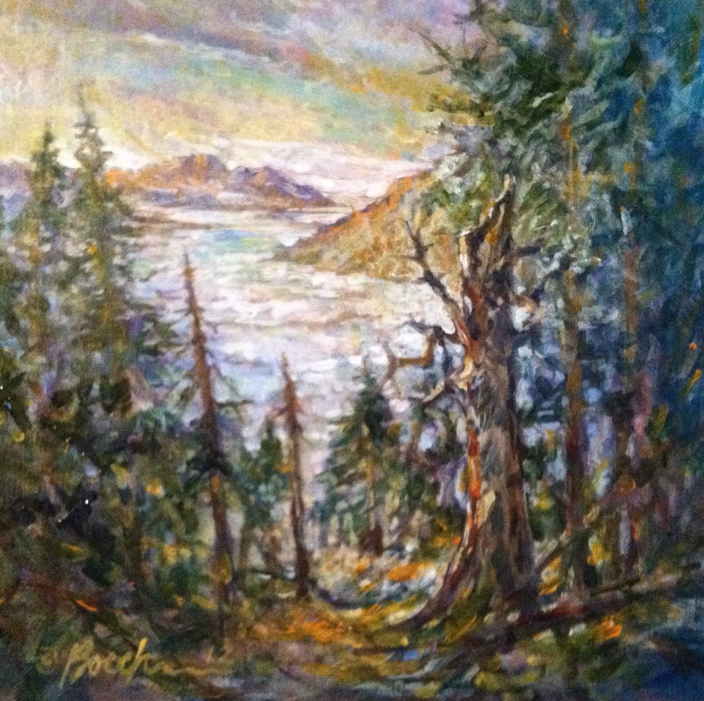 The painting I’ve chosen today was painted from Paul’s photographic memory and the combined locations that he loved so much. I learned so much from him over our time together. Most of it had to do with my own journey with Jesus. Growing up in a conservative Lutheran church, attending the church school and high school and hearing much of the law preached with little discussion about grace, I went through the early years of my marriage thinking that I would never go to heaven. My mind told me that I didn’t deserve God’s grace and mercy. With the nurturing of my loving husband, I soon learned that God did love me, more than I possibly could imagine. He also raised in a conservative church, but the focus was on the Gospel and God’s unconditional love for all people.