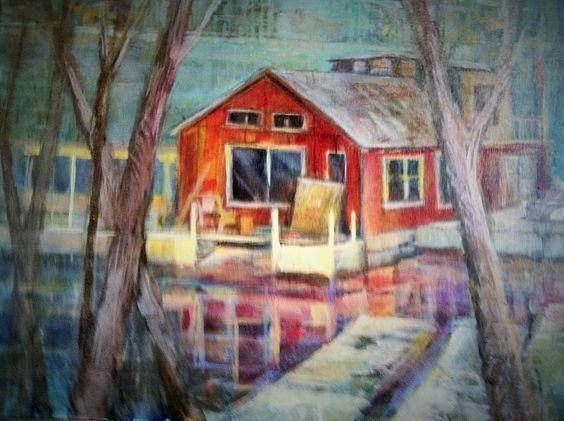Another houseboat painting which shows the art of reflecting light. Paul was a master at finding the light. Many times he would photograph a site in order to capture the moment. Then he would continue to paint on the spot, sometimes referring to the photo, other times winging it. He had a beautiful mind and I trust that God is using Paul’s talents in heaven now.