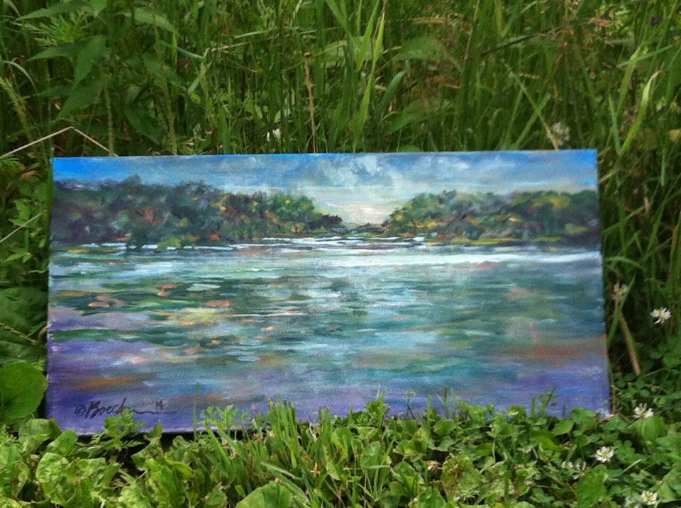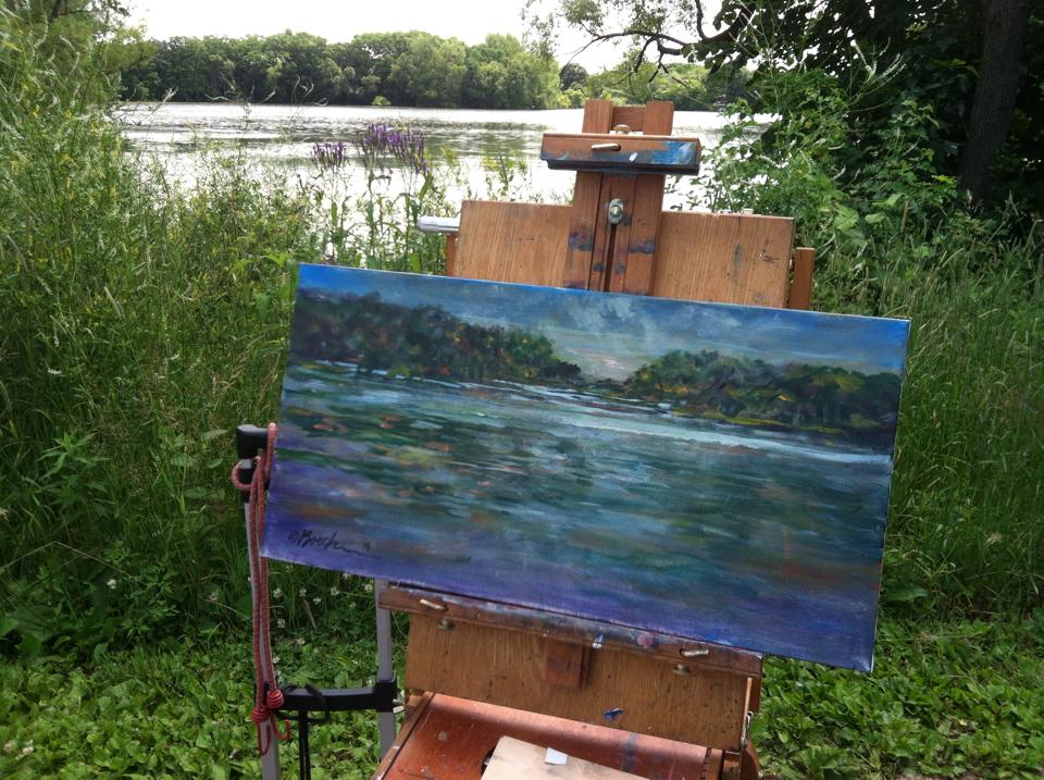 Paul had always been an early riser. He especially liked to paint at the dawn of a new day. The painting for today is shown in the process of being created and the finished product. You can almost see the moisture of morning in the surrounding grass.
