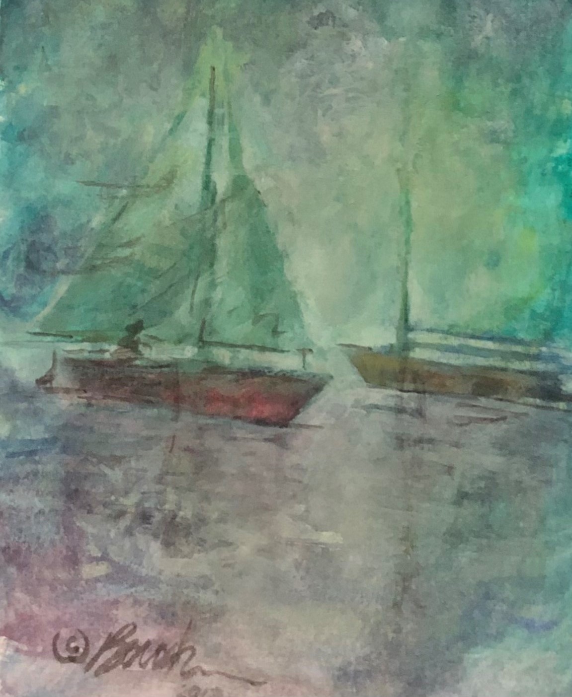 My posts are shorter this week because I have the pleasure of being with my great grandson while his mom serves an internship with developmentally challenged children. She is also working part time on weekends and taking online classes and has to fit in homework somewhere in there. She plans to graduate in December. This means getting up a little earlier each morning while it’s still a bit dark. This morning is filled with a dense fog advisory, so I found this watercolor from Paul to accompany my words.