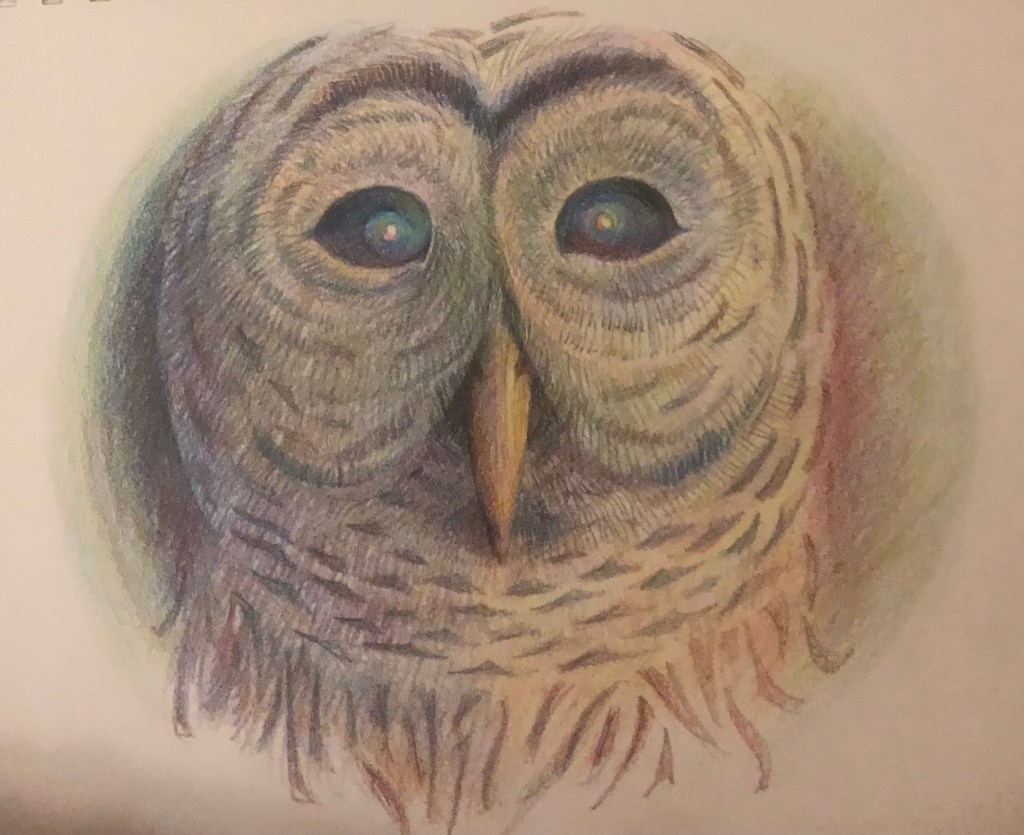 It’s Sunday – a day of rest for some and toil for others. It is definitely one day of the week we can set aside to praise our Creator for all His blessings and provision – to raise our voices in praise – to shout our alleluias – to present prayers for ourselves and others. The old barn owl in the artwork today, looks like he could use a good rest. I will not be attending church today but am blessed to be able to live stream at home as I get additional rest. The sun is shining again and things are looking up. Have a great week!