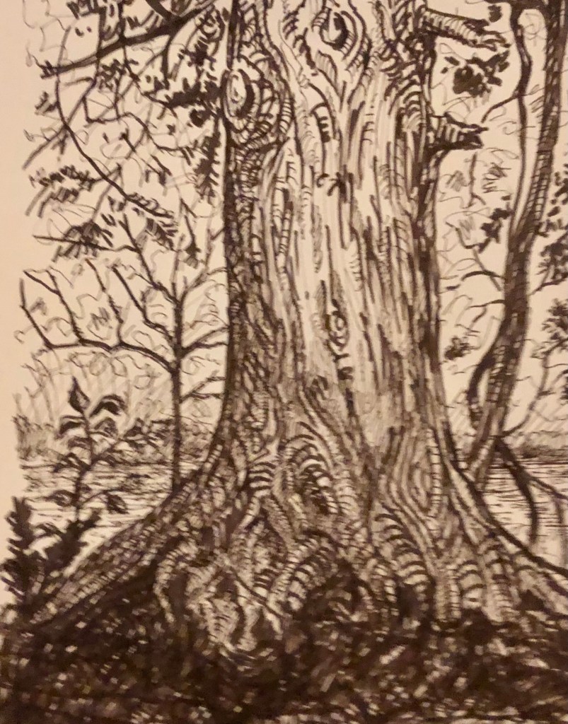 The black walnut tree outside my window is nearly completely barren of foliage. She is usually the first to bloom in the spring. I wonder how long she has stood, so staunchly guarding with limbs reaching up to God for sustenance. The trunk is completely straight with branches that fill the yard with shade for most of the summer months. As she sheds her leaves in autumn, she creates a blanket of gold upon the floor. I wonder how many humans sat below that tree and talked or shared a meal or set up an easel. My memories this year have been filled with emotion. The change of seasons makes me think of things past, present and future. When I look at that tree I see life, death and all that runs between. The seasons will change her appearance. Someday she will fall, but for now she is a sign of endings and new beginnings.