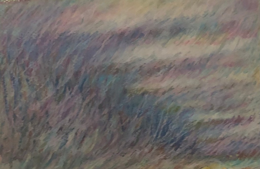 The first image is the view out my kitchen window this morning. The second is another oil pastel indicating the wind that swept through and brought the morning snow.