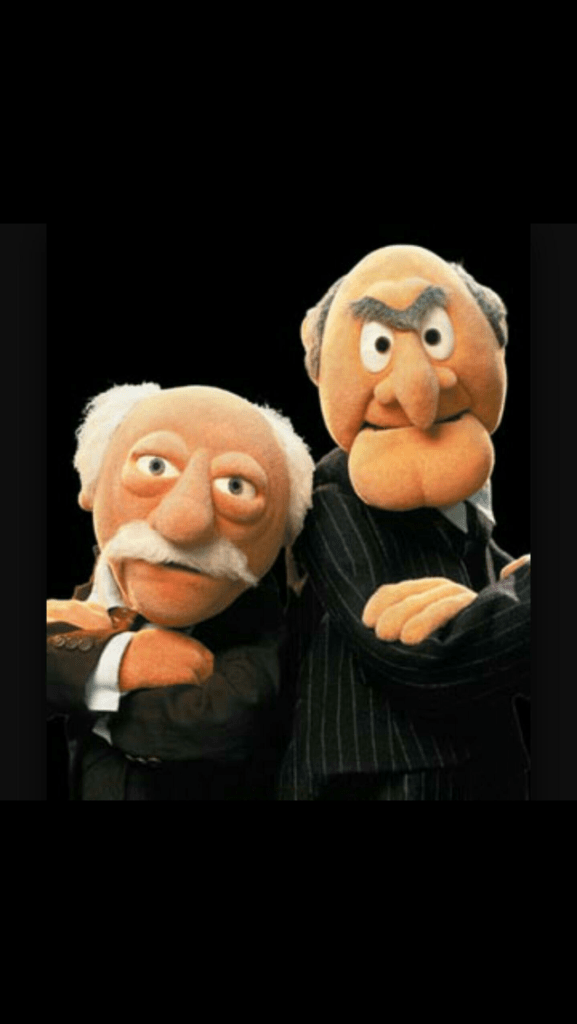 Today is Curmudgeon Day. Who knew that we’d come to this. Actually, raising a glass of good cheer for those who have turned into the grumpy Muppets complaining in the balcony, seems common in these times. I don’t get out much anymore. I’m one of those curmudgeons that prefers distancing myself from the news and all the political noise. However, when I do take a short road trip to the grocery store, I still see smiling faces. They may be missing a few teeth, but they look happy. I also notice a lot of others like me, who search for a nearby shopping cart to use as a walker. There are those who use the handicapped parking spots who look quite fit. When I find myself spending too much time watching TV or looking at a computer screen, it’s therapeutic to get out and do some people watching.