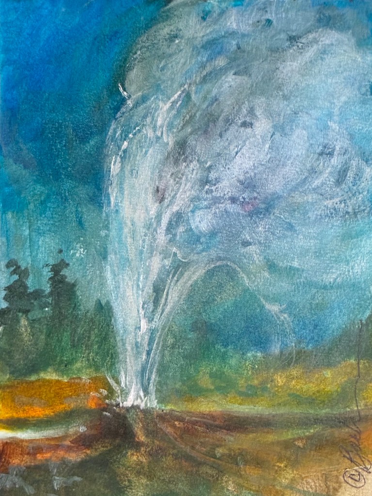 Fridays can give us feelings of finality. The work week has finished. It can fill us with freedom to spread our feathers and fly. It can further foster fun and frolicking for a couple of days. It can cause us to fret over forgotten chores. In a flash, the frenzy of life takes over, and a Friday can turn into a fitful form of faithless freefalling. Thankfully, we have a FAITHFUL God who knows every one of our needs. He is in charge of Fridays and every other day of the week. We can count on Him to muddle through whatever comes our way. I have just used several “F” words in my post and I didn’t swear once. Go figure. This watercolor painting of Old Faithful by Paul Boecher was most likely painted from memory. He didn’t often set up for plein air painting in touristy areas. He loved the solemnity of nature – the peace and quiet of locations that framed much of his art. Our lives can change rapidly, but we have the faithfulness of a God who loves and protects us through all situations.